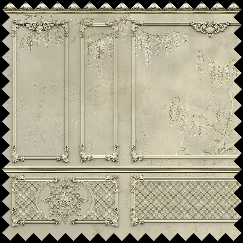 Parte din colecția Stucatto, Royal Vines (Haze) aduce cu sine ecoul poveștilor baroc și rococo reinterpretate de designul contemporan. Colecția se remarcă prin compoziții ce amintesc de stucaturile aristocratice, cu detalii ornamentale și motive florale care creează iluzia tridimensionalității. Fiecare bucată de material este un fragment dintr-un univers artistic atemporal, ce trece dincolo de utilitate și devine expresie personală în decorul modern.