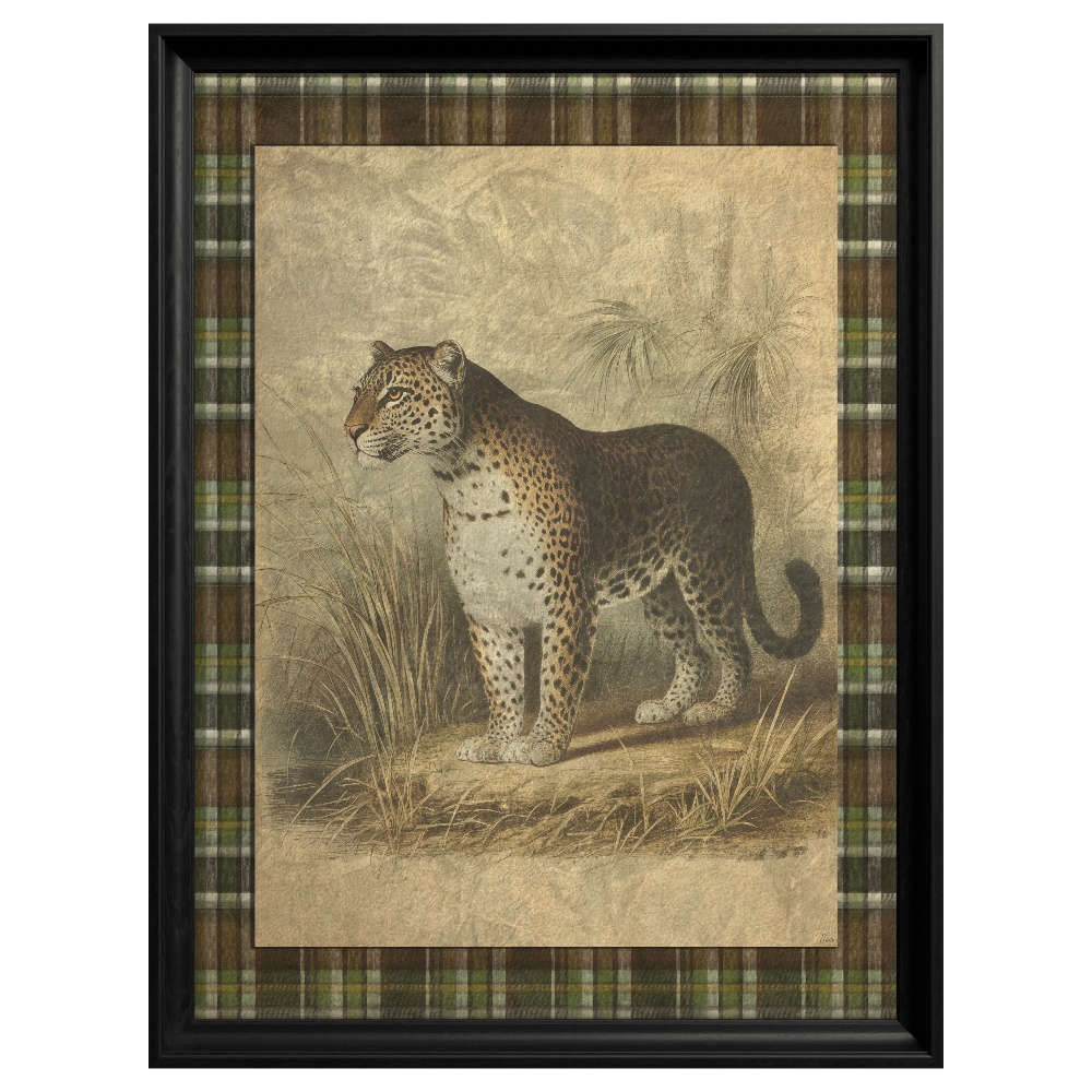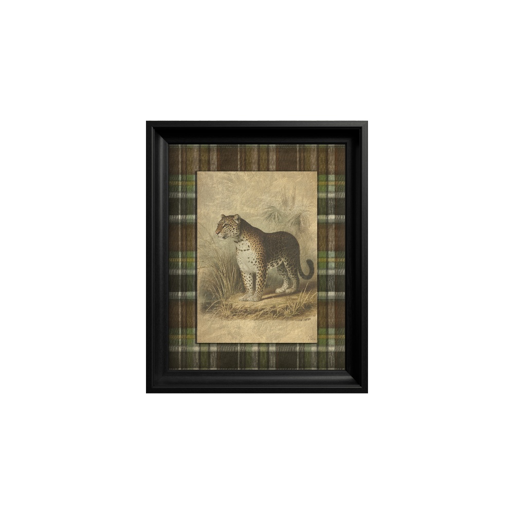 Contrastul cu fundalul tradițional de tartan în carouri adaugă o notă de noblețe și rafinament, specifică stilului colonial britanic. Înrămat elegant în negru, acest tablou din colecția "Heritage Menagerie" este piesa de rezistență pentru un living sofisticat sau un birou, inspirând grație, putere și frumusețe neîmblânzită.