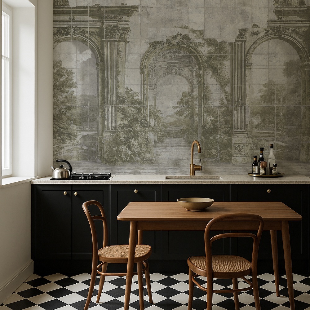 Echoed Arcades Cream este un mural al ritmului și al repetiției, inspirat de colonade care se întind spre infinit. Acest tapet surprinde fascinația barocă pentru perspectivă, unde fiecare arc devine un ecou vizual al celui precedent.