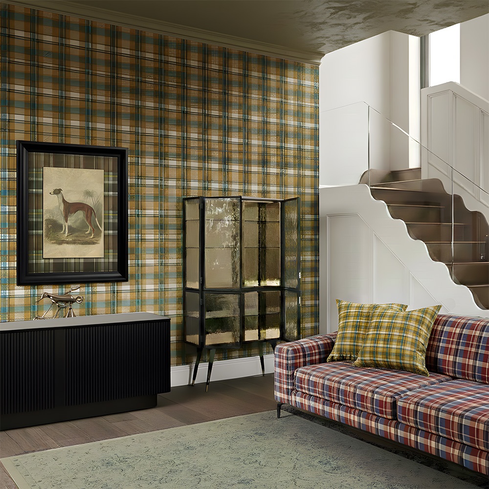 Tapet "Pitlochry" – Tartan scoțian în nuanțe de muștar și turcoaz - Colecția Modern Scotch Society