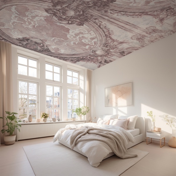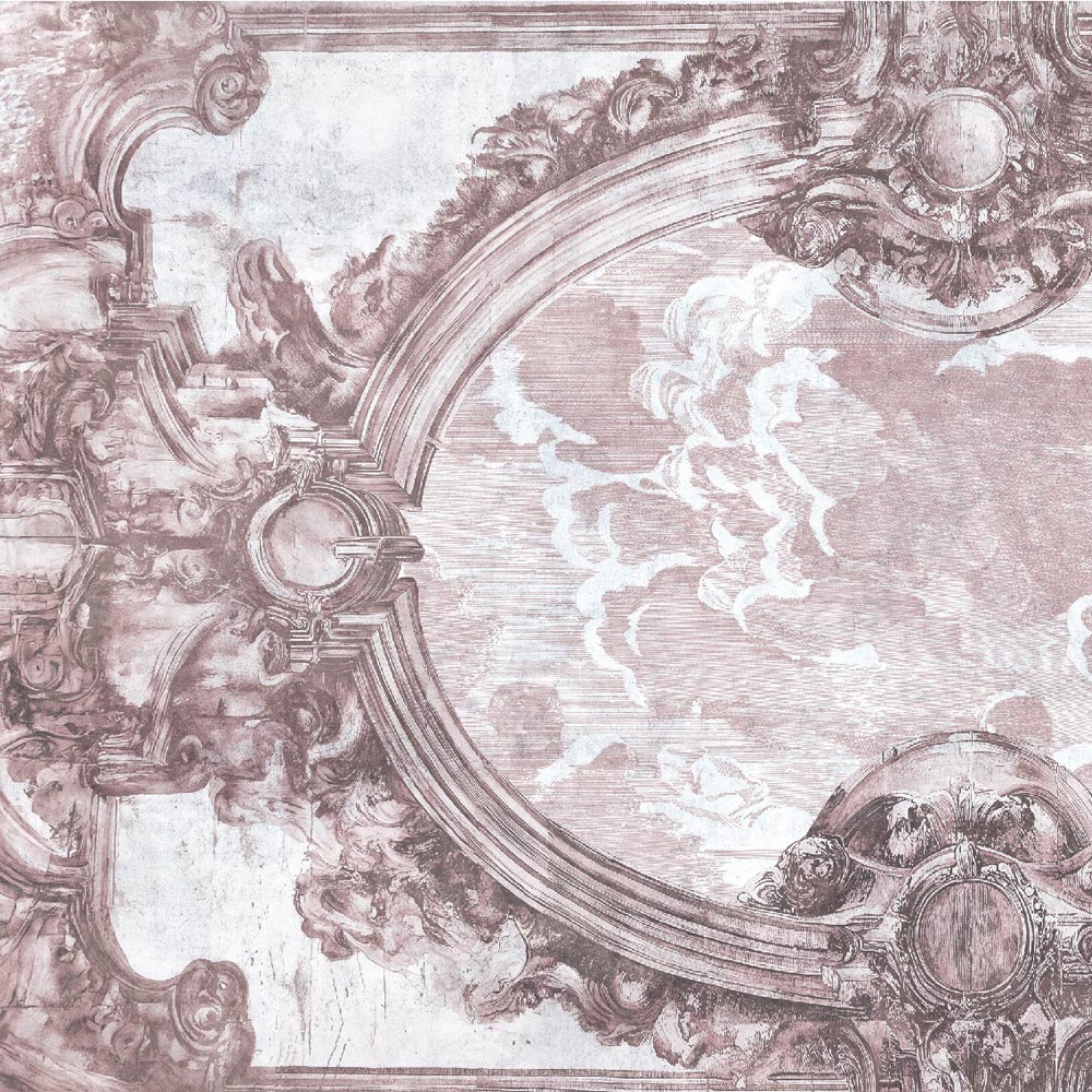 Porcelain Sky Rose este un mural de o grație delicată. Nuanțele pastelate și norii picturali creează o atmosferă de rafinament eteric. Inspirat de porțelanul pictat manual și de frescele rococo de pe tavan, acest tapet transformă opulența într-o viziune blândă și poetică.