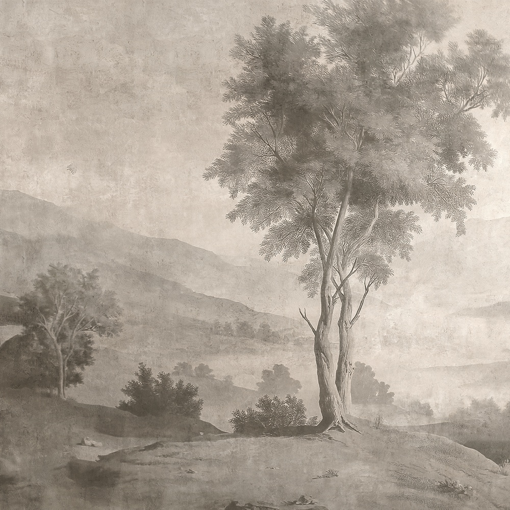 The Poet’s Retreat este un tapet mural artistic din colecția Ambiance, inspirat de melancolia peisajelor romantice și de liniștea naturii contemplative. În tonuri calde de sepia și bej prăfuit, modelul redă un peisaj montan atemporal, cu un arbore solitar în prim-plan, ce devine simbolul reflecției și al echilibrului interior. Compoziția amintește de picturile vechi în ulei, cu texturi subtile, umbre fine și profunzimi care invită la introspecție și calm.